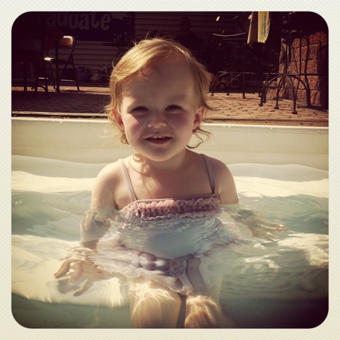 This is how the majority of their day was spent yesterday, in the pool! I had to watch them like a hawk, because neither one know how to swim yet, but Evan was being very brave and trying. He was kicking back and forth between the steps, and even jumped from the steps to me, I think swimming lesson are in order for both of them.